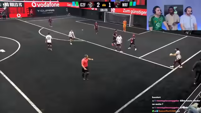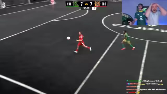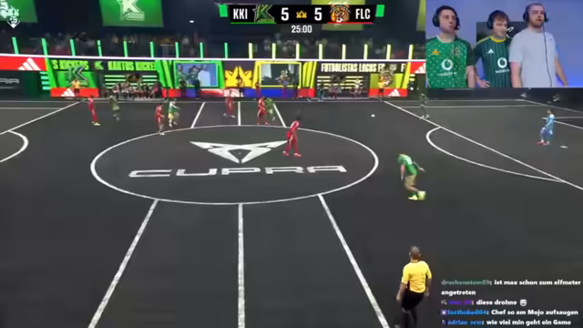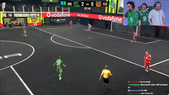 01:33:14Die Cactus Kicker gehen früh mit 2:0 in Führung, was für gute Stimmung sorgt. Es wird jedoch erwähnt, dass Chefstrobel den besten Keeper der Kings League hat, was die Führung nicht als selbstverständlich erscheinen lässt. Die fehlende Bewegung ohne Ball im gegnerischen Team wird kritisiert, und es wird überlegt, ob sie im 2 gegen 2 nicht gut sind. Ein Schuss landet an der Latte, was für Enttäuschung sorgt, da er fast drin gewesen wäre. Die Cactus Kicker spielen sehr gut und zeigen eine starke Derby-Energie. Trotzdem landen weitere Schüsse an Latte und Pfosten, was auf Pech oder eine starke Abwehr hindeutet. Chefstrobel wird gefragt, ob er seine Entscheidung bereut, mit dem Team gegangen zu sein, und welche offensiven Ideen sein Team hat.