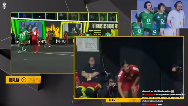 01:40:45Die Leistung von Chefstrobels Team wird kritisiert, da ihnen der Biss fehlt und das 'Mojo' weg zu sein scheint. Es wird humorvoll angedeutet, dass Chefstrobel selbst schuld daran ist, da er der Präsident ist. Eine strittige Szene führt zu Diskussionen über ein Foul, wobei der Schiedsrichter diskutiert. Ein Fernschuss führt zum Anschlusstreffer für Chefstrobels Team, was als 'Gammler Tor' bezeichnet wird, aber trotzdem zählt. Es wird auf Abseits überprüft, aber der Treffer ist gültig. Die Spannung steigt, da es nun 2:1 steht. Ein weiterer Angriff von Chefstrobels Team wird gut verteidigt. Es wird betont, dass die Cactus Kicker ihren ersten Sieg wieder gegen Chefstrobel holen könnten. Eine weitere Szene führt zu Diskussionen über ein Foul, wobei der Streamer Chefstrobel Recht gibt, dass es eigentlich keins war.