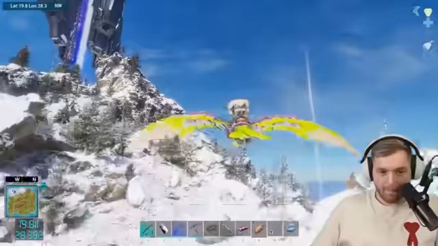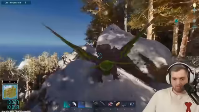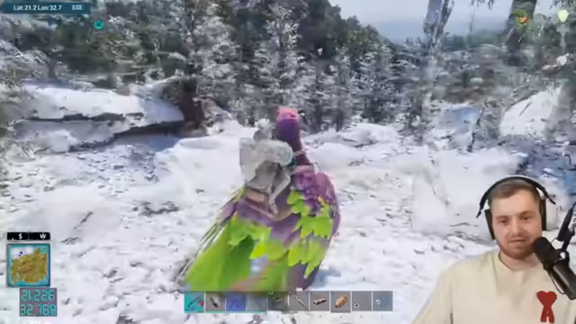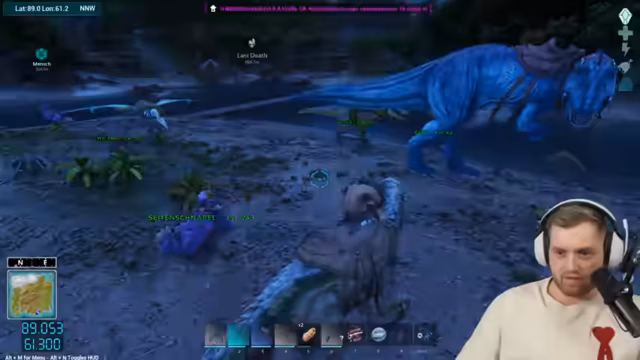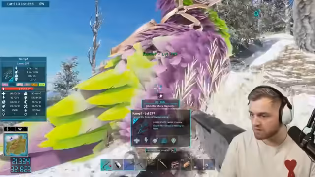 03:28:20Die Suche nach dem männlichen UT wird fortgesetzt, stößt aber auf Hindernisse durch aggressive Dinosaurier und Schwierigkeiten bei der Navigation im Schneegebiet. Die Spieler berichten von Angriffen durch andere Tiere, Verlusten von eigenen Vögeln und der Frustration über die schlechte Spawn-Rate. Sie koordinieren sich, um gegenseitig Schutz zu bieten.