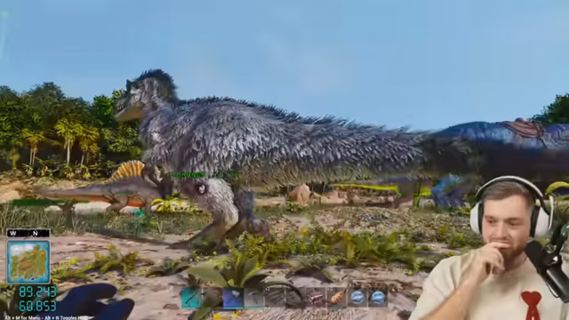 00:32:15Die Zähmung eines übermächtigen Tyrannosaurus namens G. Ranus wird gefeiert, aber Probleme mit weiblichen Exemplaren treten auf, die unbrauchbar sind. Weitere Aufgaben umfassen den Bau einer Bierbrauerei für die Elefanten-Zähmung und ein Gewächshaus für Gemüsekuchen, wobei Diskussionen über Kuchen-Präferenzen entstehen, mit Gerede über Käsekuchen-Hass und Schokokuchen. Die Gruppe strebt eine XP-Farm an, um Level 95 für Industrial Cooker und Industrial Grill zu erreichen, und bufft Dinos mit Newtie für Teamstärke. Erkundungen im Schneegebiet begegnen Herausforderungen wie Zement- und Ölmangel, Pelzrüstung-Crafting und die Aktivierung der Buff-Fähigkeit der Dinos mit der C-Taste. Der Erfolg bei der Tyrannos-Zähmung stärkt das Team für zukünftige Abenteuer, und die Vorbereitung für Unterwasser-Abenteuer wird mit der Zucht von Megalodon und Basilosaurus fortgesetzt.