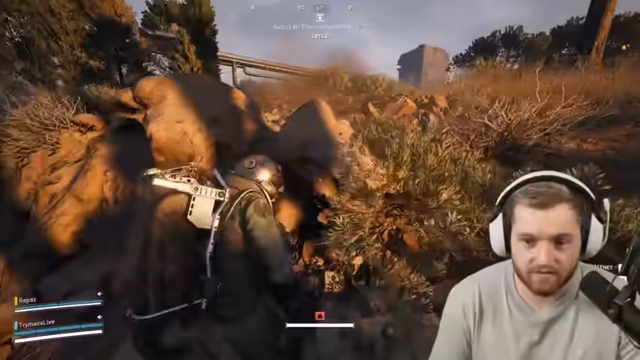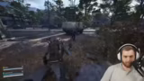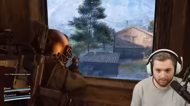02:53:58Während des Lootens wird ein Leaper, ein gefährlicher Gegner, alarmiert. Es entsteht ein Kampf, in dem der Streamer mit seinem Partner fliehen muss. Sie nutzen eine Ködergranate, um den Feir abzulenken, und suchen Deckung, um nicht gesichtet zu werden. Der Abschnitt verdeutlicht die existenzielle Gefahr in einem Run und die Notwendigkeit, taktisch zu agieren, um zu überleben.