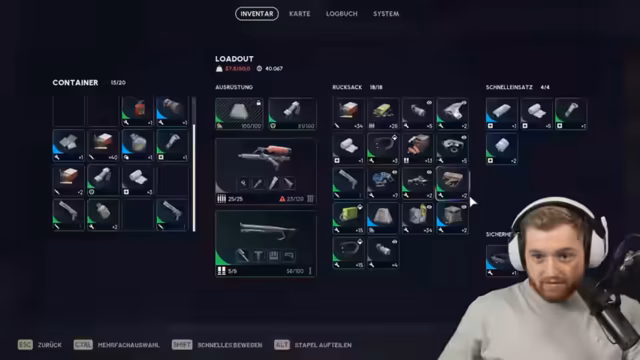 02:51:05Ein zentrales Thema ist das effiziente Management des Inventars. Der Streamer erklärt, welche Items als Priorität gelten: Augen für Quests, gelbe Gegenstände, Munition und spezielle Ausrüstung wie Schildauflader und Bandagen. Schwerpunkte sind der Inventarwert, die Maximierung der Tragfähigkeit durch den Einsatz von Beutemarkern und das strategische Wegwerfen von weniger wertvollen Gegenständen, um Platz für Loot zu schaffen.