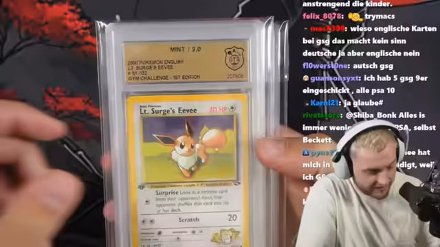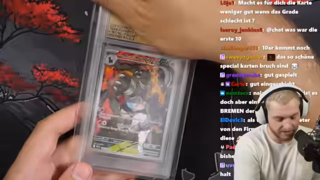 04:05:55Die letzten Karten des Streams sind die absoluten Highlights: zwei Glurak-Karten. Zuerst wird ein dunkles Turtok in englischer First Edition enthüllt, das zwar nicht die erhoffte 9.5er Bewertung erreicht, aber dennoch als wertvoll gilt. Die finale Spannung konzentriert sich auf das erste deutsche Holo-Glurak aus dem Base-Set von 1999. Diese Karte erhält eine beeindruckende 9.0 Bewertung, mit Subgrades, die auf eine potenzielle PSA 10 hindeuten. Der Streamer ist begeistert und spekuliert über einen Wert von bis zu 17.000 Euro in einer PSA 10. Er kündigt an, diese Karte zu PSA zu schicken, in der Hoffnung auf eine noch höhere Bewertung. Die allerletzte Karte, ein dunkles Glurak aus Team Rocket, erhält eine 8.5, was als Enttäuschung empfunden wird, da das Team Rocket Set insgesamt schlechte Bewertungen lieferte. Abschließend wird eine Kooperation mit GSG bekannt gegeben, die einen Rabatt von 25% auf Grading-Dienstleistungen anbietet, um die Zuschauer zu ermutigen, ihre eigenen Karten bewerten zu lassen.