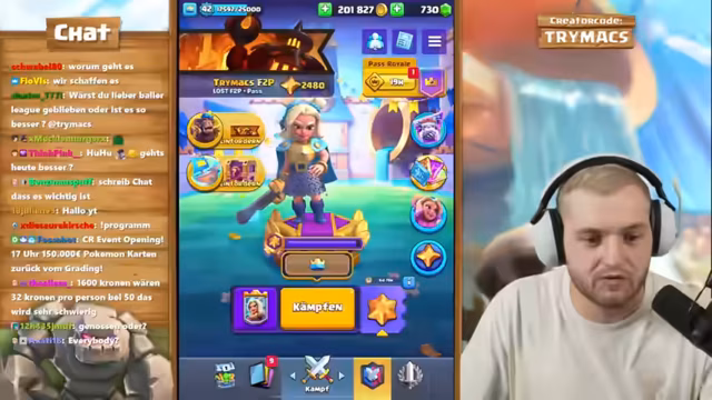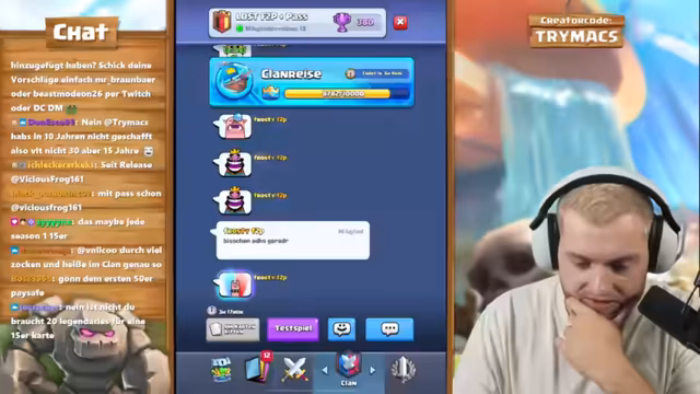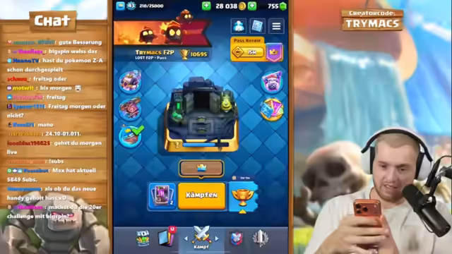 00:11:04Der Streamer präsentiert seinen Free2PlayPlus Pass-Account in Clash Royale. Er hat das Clan-Event fast abgeschlossen, ist Erster in den Clan-Kriegen und die Clan-Reise ist ebenfalls weit fortgeschritten. Ziel des Accounts ist es, 15.000 Trophäen zu erreichen, den Rang freizuschalten und schließlich Ultimativer Champion zu werden, alles ohne Echtgeld-Einsatz außer dem Pass. Er öffnet verschiedene Kisten und Belohnungen, darunter eine Billow Chest und Belohnungen vom ersten Platz im Clan. Dabei kommentiert er die erhaltenen Karten und Joker, wie 209 gewöhnliche Joker und einen Holzfäller, der potenziell in einem Golem-Deck gespielt werden kann. Er betont die Wichtigkeit, Clan-Kriege zu spielen, um Masteries zu farmen.