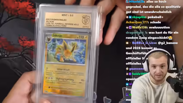 01:54:35Es werden Karten aus dem Prismatic Evolution Set bewertet, die ursprünglich sehr wertvoll waren. Trotz hoher Erwartungen erhalten viele dieser Karten, wie der Pokéball Blitzer, Bewertungen von 8,5 oder 9,0. Der Streamer erwähnt, dass er viele Karten aus diesem Set eingesendet hat, obwohl er es als 'reinste Geldverbrennung' bezeichnet. Ein Meisterball Blitzer in Englisch aus Prismatic Evolution erhält eine 9,0, was als 'nice' und 'geiles Ding' kommentiert wird. Mehrere weitere Pokéball-Karten erzielen ebenfalls 9,0. Besonders hervorzuheben sind zwei Meisterball-Karten mit einer 9,0, was als 'crazy' bewertet wird. Nachtara Pokéball und Felinara Meisterball erhalten ebenfalls hohe Bewertungen, wobei eine Felinara Meisterball 10 fast 200 Euro wert sein könnte. Die Seltenheit von 10er-Bewertungen wird betont, da selbst bei Hunderten eingesendeten Karten kaum eine solche Bewertung erzielt wird.