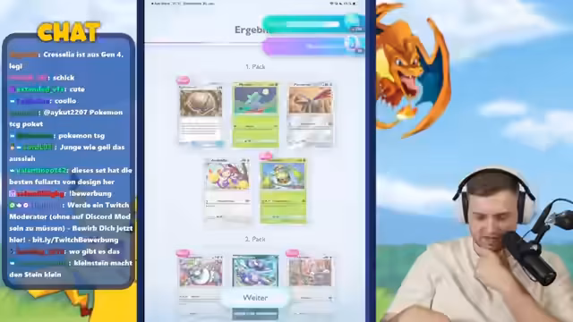 06:44:58Der Streamer beginnt mit der Öffnung von neuen Pokémon-Karten-Packungen. Er zeigt sich beeindruckt von der großen Anzahl der Karten im neuen Set, das 207 Karten umfasst, und hebt besonders coole Artworks wie das von Togepi und Burmadan hervor. Bei der Öffnung fällt ihm auf, dass die App manchmal technische Probleme hat, wie z.B. das Fehlen von Ton oder das Blockieren von 10er-Packs durch 3er-Packs. Trotzdem sind seine Begeisterung über die Vielfalt an Karten und die coolen Design-Elemente, wie alternative Artworks und Hintergrundgeschichten, groß.