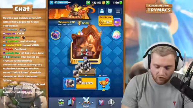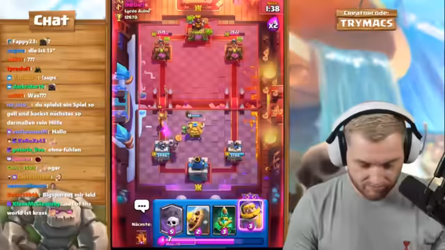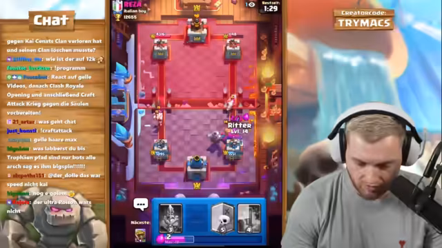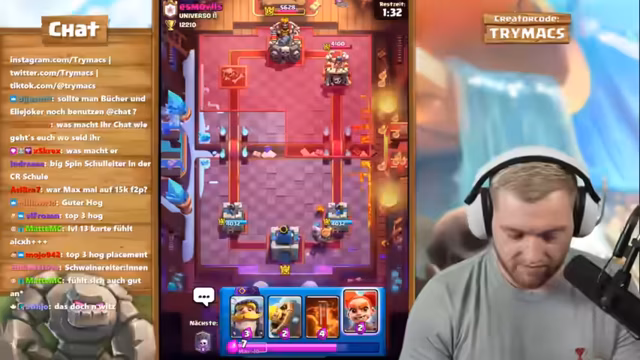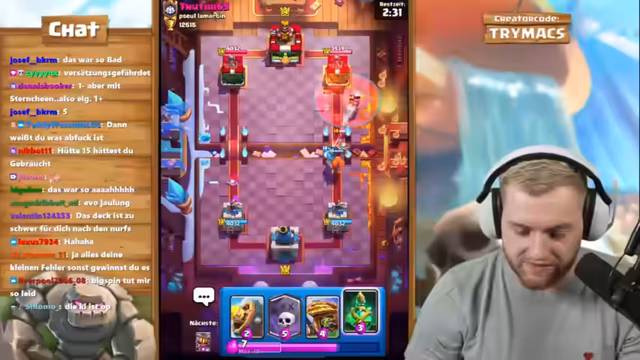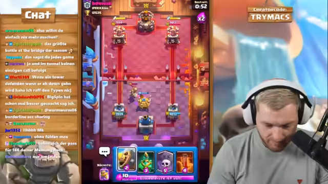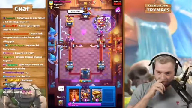00:44:41Der Streamer startet den Clash Royale Teil, um den 'Free to Play plus Passprojekt' abzuschließen. Er hat noch wenige Level im Pass übrig und plant, mit 'Big Spin' zu pushen, um die ultrageile Kiste bei 13.400 Trophäen zu erreichen. Viele Karten sind bereits auf Level 14, was vorteilhaft ist. Es wird das kommende Level 16 Update angesprochen, das zwar das Level 16 an sich kritisch betrachtet, aber die Gesamtveränderung des Spiels als phänomenal einschätzt. Der Streamer besitzt viele legendäre Joker und Bücher, die er aufgrund fehlender Elite-Joker nicht nutzen kann. Er rät den Zuschauern, bis zum Update keine Karten upzugraden und Bücher zu behalten, da Karten günstiger werden. Es wird diskutiert, ob Elite-Joker auf bestimmte Karten wie den Friedhof oder den Ritter angewendet werden sollen. Nach dem Öffnen des Passes und dem Einsammeln von Belohnungen, darunter ein Evo-Skelettfass, wird 'Big Spin' hinzugezogen, um Strategien zu besprechen. Es kommt zu einer intensiven Diskussion über die Verwendung von Büchern bei Level 13 Karten, um von 13 auf 14 zu upgraden, da die benötigten Joker-Mengen sinken. Diese Vorgehensweise wird als vorteilhaft erachtet, solange die Karten nicht sofort upgegradet werden. Die Meta wird als 'ekelhaft' beschrieben, da viele beliebte Karten wie Ofen, Berserkerin und Friedhof generft wurden. Trotzdem bleibt der Streamer seinem Friedhof-Deck treu. Es folgen mehrere Matches, in denen die Strategie und Platzierung von Karten wie Ofen, Hütte, Ritter und Friedhof intensiv diskutiert werden, oft mit Meinungsverschiedenheiten zwischen dem Streamer und Big Spin. Die Matches sind geprägt von Fehlentscheidungen und knappen Niederlagen, was zu Frustration führt. Die Kommunikation über die korrekte Platzierung der Hütte, insbesondere im Zusammenhang mit gegnerischen Zaubern wie 'Lightning' und 'Freeze', steht im Mittelpunkt der Analyse. Trotz der Schwierigkeiten wird versucht, die bestmögliche Strategie zu finden und die Fehler zu analysieren, um die Trophäen zu erhöhen.