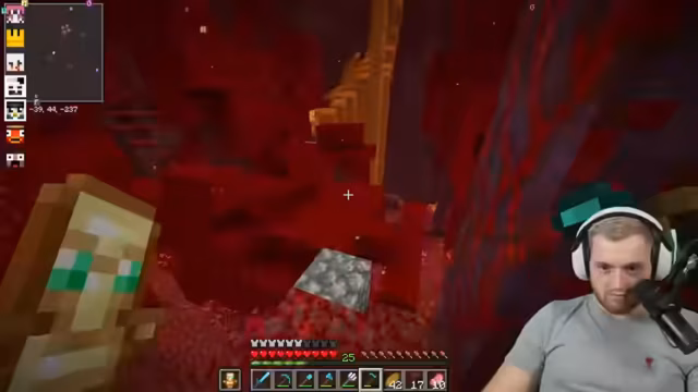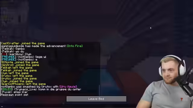 05:27:55Der Streamer drückt seine Angst aus, im Nether zu sterben und alles zu verlieren. Die gesammelte Menge an Steaks wird überprüft, und es stellt sich heraus, dass die Aufgabe, acht Stacks zu sammeln, nicht vollständig erfüllt wurde, obwohl 5,5 Stacks als 'super' bezeichnet werden. Es wird überprüft, wie viel Kupfer bereits im Lager ist, und die benötigte Gesamtmenge für den Golem wird berechnet. Der Streamer ist stolz darauf, das erste Mal im Nether gewesen zu sein, ohne zu sterben. Die Aufgabenverteilung bei den 'Säulen' wird besprochen, wobei Nick am meisten 'Anschiss' bekommt und Willi am wenigsten online ist. Reapers wird als derjenige hervorgehoben, der am meisten gearbeitet hat, insbesondere in der Nacht. Der Teamzusammenhalt und die geringe Toxizität im Team werden gelobt, obwohl es manchmal zu humorvollen Streitereien kommt. Die Frage, ob der Streamer nächstes Jahr wieder bei den Säulen dabei sein wird, wird mit '100% Decker' beantwortet. Ein weiterer Streamer, Stubbel, wird aufgefordert, in die Gruppe zu kommen, da er sich in der Base herumschleicht. Es wird über die Häufigkeit von Treffen der Streamer gesprochen, die sich im Alltag kaum sehen. Der Streamer beklagt sich über Knieprobleme und Gewichtszunahme. Die Diskussion kehrt zum Golem-Bau zurück, wobei der Kopf und die Augen des Golems fertiggestellt werden sollen. Es wird festgestellt, dass viele Teammitglieder offline gegangen sind. Die Gaming-Fähigkeiten der Teilnehmer werden thematisiert, wobei ein Teilnehmer seine früheren Erfolge in League of Legends (Platz 11 global in Top-Lane Yone) mit seinem aktuellen Status (hohes Platin, 'hartstuck') vergleicht. Er gibt zu, in Valorant und Rocket League geboostet worden zu sein, ist aber in Factory-Games und Fortnite (mit Julian Bam) sehr gut. Er bezeichnet sich selbst als 'krassesten Anti-Gaming-Gaming-Streamer', da er erst spät einen PC hatte und hauptsächlich Konsolenspiele wie Call of Duty auf Playstation 3 spielte, wo er in einer Liga erfolgreich war.