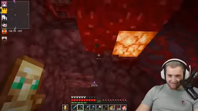04:14:47Nachdem das Gefängnisszenario abgeklungen ist, verlagert sich der Fokus auf die Vorbereitung eines Events im Nether. Der Streamer und seine Gruppe benötigen große Mengen an Gunpowder für eine geplante riesige Sprengung. Es werden Helfer aus der Gruppe zusammengeholt, um die benötigten Ressourcen zu farmen. Es wird auch die Notwendigkeit von Shroomlights erwähnt, die für das Rätsel rund um das Drachenei benötigt werden und ebenfalls im Nether geerntet werden müssen.
