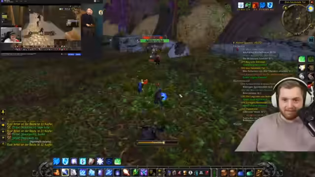 02:15:16Der Stream wechselt abrupt zum Thema World of Warcraft. Der Streamer und sein Team (Niki, Jesse, Sebo) planen, gemeinsam zu leveln, da Niki einen Off-Day hat. Das Ziel ist, von Level 28 auf 30 zu kommen. Nach anfänglicher Verwirrung über geeignete Gebiete und Dungeons wird beschlossen, als Trio (Tank, Healer, Damage) in das Gebiet 'Aschental' zu ziehen, da es Quests für ihre Level-Bereiche bietet.