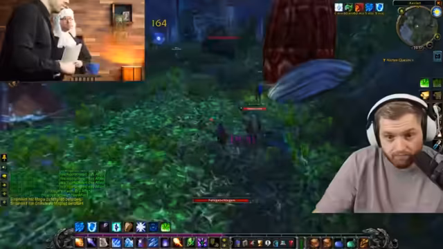 03:00:18Der Streamer berichtet von einem besonderen Event in World of Warcraft, das wie eine Gerichtsverhandlung aufgebaut ist. Angeklagt ist ein Spieler namens Chef Strobel, der beschuldigt wird, sein Team in einer Instanz verraten zu haben, was zum Tod anderer Spieler führte. An dieser Verhandlung nehmen sowohl deutsche als auch amerikanische Streamer teil, darunter bekannte eSportsler. Angeklagte und Anwälte führen komplexe Diskussionen, die echten Gerichtsverhandlungen ähneln, um über die Schuld des Spielers zu befinden.