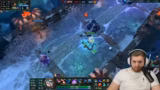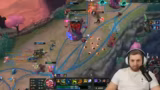 05:56:08Im Endspiel des Matches werden die finalen Ziele kontrolliert. Das Team entscheidet, den Turm zu drücken und den gegnerischen Ashe, die eine massive Bedrohung darstellt, zu eliminieren. Der Streamer benutzt seine Ultimate, um in den Kampf zu springen, und hofft, mit dem Hook seines Teamkameraden den tödlichen Schlag gegen die Ashe landen zu können. Er warnt vor der Gefahr durch den gegnerischen Warwick und betont die Notwendigkeit, sicher zu spielen. Der Fokus liegt darauf, die letzten verbleibenden Gegner zu beseitigen, um das Spiel zu entscheiden, während das gegnerische Team versucht, mit einem aus dem Jungle kommenden Flankenmanöver das Blatt zu wenden.