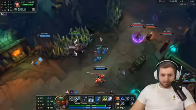 05:06:53Der Streamer wechselt zwischen den Spielmodi, von einem Ranked-Spiel zu einem normalen Spiel, um verschiedene Rollen wie Jungle zu üben. Er diskutiert die Herausforderungen des Jungle-Rolles und das Gefühl, in einem kompetitiven Setting verloren zu sein, obwohl er gegen einen starken Mid-Laner gewinnt. Sein Champion-Wissen wird deutlich, als er die Mechaniken des gegnerischen Smolders erklärt, einschließlich seiner stacking-Ultimate. Er gibt konkrete Item-Build-Empfehlungen, wie z.B. das Erwerben von Bramble Vest gegen bestimmte Champions, und betont die Wichtigkeit von Positionierung und Timing im späteren Spielverlauf.