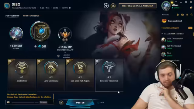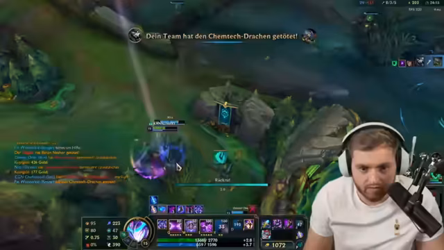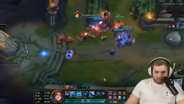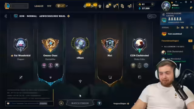 04:07:57Während des Spiels treten erhebliche Probleme auf. Der Spieler Chef Strobl scheint nicht fokussiert zu sein, was zu einer AFK-Warnung führt. Der Streamer ist verärgert, da er Chef Strobl zuvor gewarnt hatte, mit ihm nicht zocken zu können. Im Team entscheiden sich die Spieler für bestimmte Champions wie Sylas und Cho'Gath, wobei der Streamer unzufrieden mit der eigenen Champion-Wahl und der Leistung des Teams ist. Die Kommunikation und das Teamplay lassen stark zu wünschen übrig.