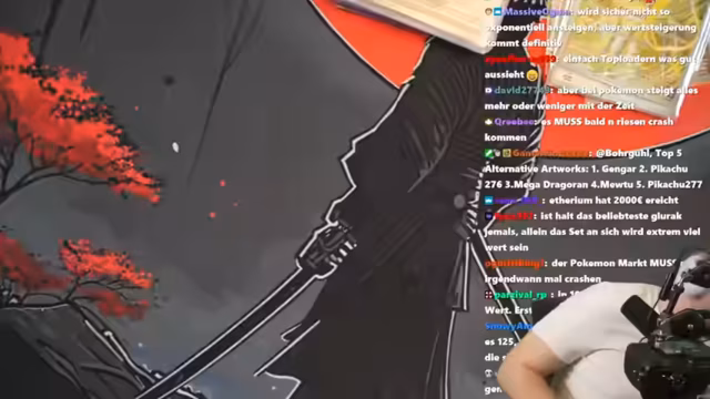 02:16:39Zwischen den Ziehungen diskutiert der Streamer über den Pokemon-Kartenmarkt und seine Sorgen bezüglich einer möglichen Marktkorrektur. Er spricht über das Bunkern von Karten durch Scalper, was die Preise künstlich in die Höhe treibt, und prognostiziert einen 'fetten Crash'. Gleichzeitig ist er verblüfft über den konstanten Anstieg der Kartenwerte in der Vergangenheit.