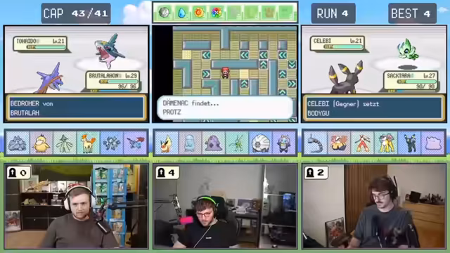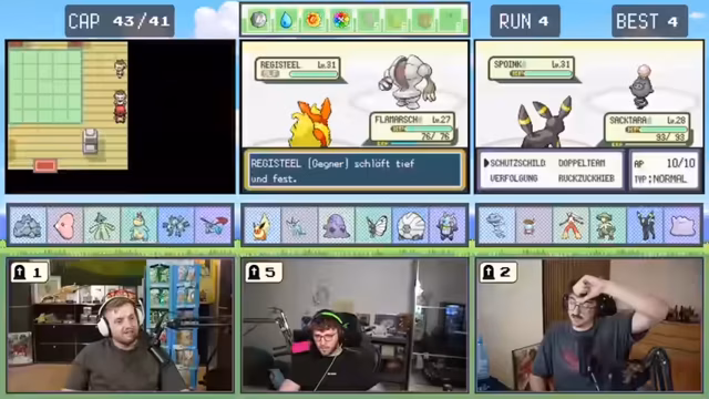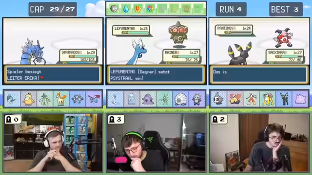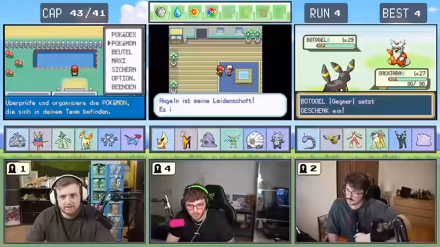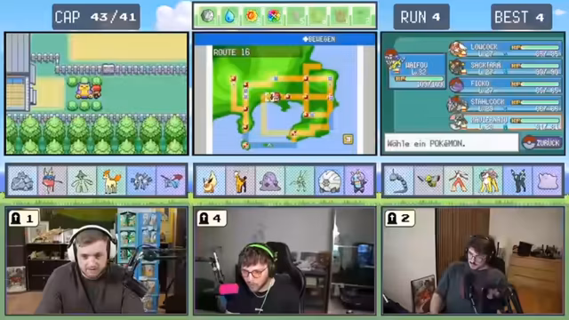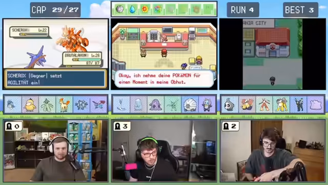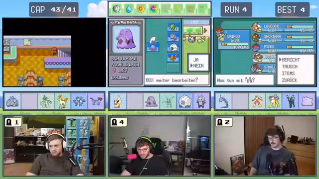 Nachdem ein legendäres Pokémon getötet und das gesamte Team durch einen kritischen Treffer dezimiert wurde, bricht eine schwere Krise im Trio aus. Es wird ein klarer Fehler bei dem Leveln eingeräumt, als vor einem gefährlichen Gegner nicht geflüchtet wurde. Trotz der schweren Rückschläge ist der Streamer motiviert, den Run mit neuen Strategien und ohne alle Items neu zu starten, um das Spiel fairer zu gestalten.