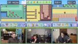 00:54:43Die Teilnehmer überlegen, welche Pokémon sie in der nächsten Arena einsetzen sollen und stossen auf das Problem, dass das Level Cap der fünften Arena auf 43 liegt. Sie diskutieren, ob sie ihre Pokémon unterleveln sollen, um den Kampf bestehen zu können. Gleichzeitig wird eine Strategie entwickelt, bei der jedes getötete Pokémon einem anderen ein EV-Punkt gibt, um die Stärkung des Teams zu optimieren.