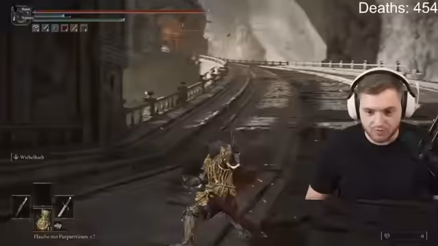 06:04:18Der Streamer kämpft weiterhin mit dem Boss und versucht, dessen Angriffsmuster zu verstehen. Besonders die Scheibenattacken sind schwer zu durchschauen, da sie aus verschiedenen Richtungen kommen und schwer auszuweichen sind. Selbst wenn er ausweicht, wird er oft getroffen. Er kann den Boss kaum angreifen, da er ständig am Ausweichen ist. Er vermutet, dass es einen Trick gibt, um den Boss leichter zu besiegen, aber er kann ihn nicht finden. Der Streamer experimentiert mit verschiedenen Taktiken, wie dem Ausweichen in verschiedene Richtungen und dem Versuch, hinter den Boss zu gelangen, aber nichts scheint zu funktionieren. Er stellt fest, dass der Boss sich heilen kann, was den Kampf noch schwieriger macht. Die Anzahl seiner Tode steigt rapide an, und er bezeichnet den Boss als seinen bisher schwierigsten Gegner. Er verliert 13 Tränke durch eine Attacke des Bosses und kann sich kaum heilen. Der Streamer vermutet, dass dies sein bisher schwierigster Bosskampf werden könnte.