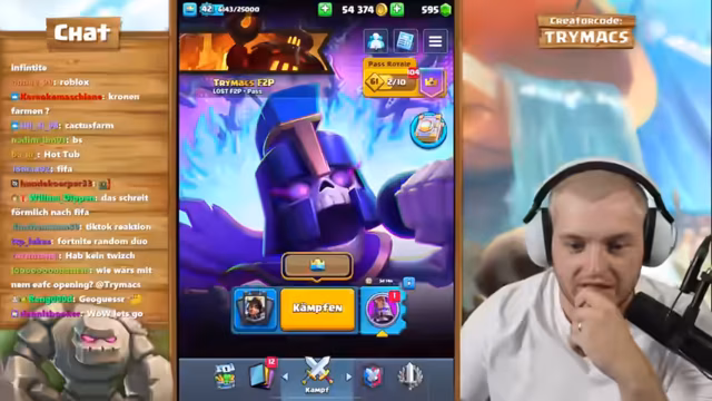 01:27:28Nach einem erfolgreichen Clash of Clans-Stream wechselt der Streamer das Thema zu Clash Royale. Er hat sich mit BigSpin zu einem Auswahlkampf um 18:30 Uhr verabredet. Bevor das Spiel startet, wird kurz über ein neues Hugo-Video und die Möglichkeit eines Reacts gesprochen. Der Streamer nutzt die Wartezeit, um auf das anstehende Clash Royale-Spiel einzustimmen und die Aufregung im Chat zu teilen.