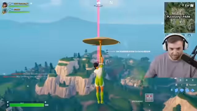 01:23:56Trymacs erlebt eine unerwartete Situation, als er durch ein von seinem Mitspieler gebautes Konstrukt slidet und dadurch sehr weit weg katapultiert wird. Er bedankt sich für die Rettung und erklärt, wie der schiefe Winkel ihn mit hoher Geschwindigkeit weggefetzt hat. Anschließend geraten sie in einen Kampf mit mehreren Teams, wobei Trymacs einen Gegner mit einem 105er Hit ausschaltet. Er äußert den Wunsch nach einem Raketenwerfer und tauscht dafür Biggies gegen Medis ein. Er wird von einem Sniper vom Berg beschossen und von hinten überrascht, was ihn frustriert. Er bittet seinen Mitspieler um Hilfe und betont, dass er Schilde benötigt. Trymacs erhält Slurps und Minis von seinem Mitspieler und kritisiert dessen langsame Reaktion. Er läuft in die falsche Richtung und wird erneut von einem Sniper beschossen, der sich in ihrer Basis befindet. Trymacs wird zunehmend aggressiv, da er ständig von drei Leuten beschossen wird und keine Gelegenheit hat, Gegner zu suchen. Er wird mehrfach zu Boden geschickt und kritisiert seinen Mitspieler dafür, dass er ziellos nach Gegnern sucht, anstatt ihm zu helfen.