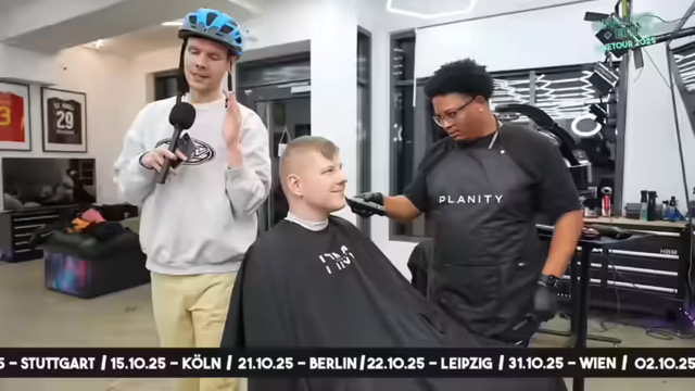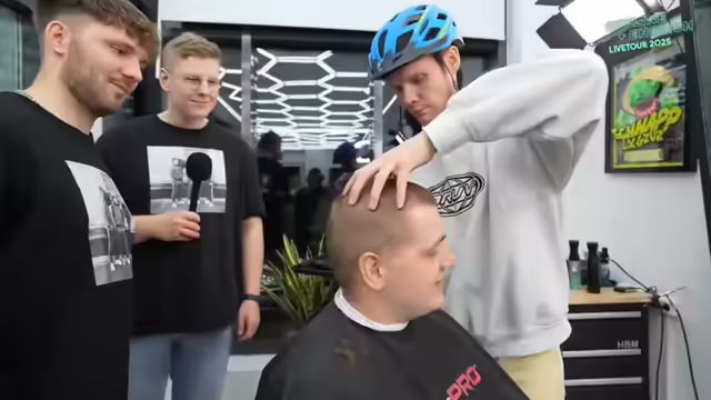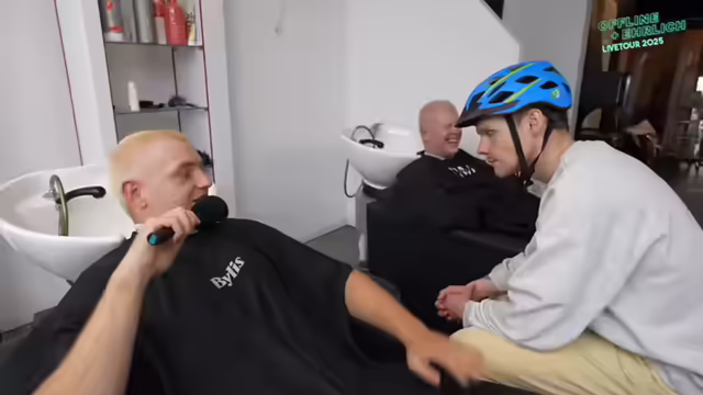 04:10:14Es wird über die Erwartungen an die neue Frisur gesprochen und wie sie auf der Tour ankommen wird. Es wird erwähnt, dass nur Max und ein anderer die Slim Shady-Klamotten tragen werden. Die Helm-Challenge wird erklärt: Das Team wollte zeigen, dass Sicherheit wichtig ist und Fahrradhelme cool aussehen können. Verschiedene Teammitglieder werden mit dem Helm an verschiedenen Orten gesichtet. Es wird überlegt, ob Marc Eggers im Megapark mit Helm auftreten wird. Es wird über den Hate gesprochen, den man für das Tragen des Helms bekommen könnte, insbesondere von älteren Menschen. Es wird über das Einwirken der Farbe gesprochen. Der Chat wird als schlecht befunden. Es wird über eine alte Frau gesprochen, die auf einer Segway-Tour sauer war. Es wird überlegt, ob die Seiten rasiert wurden. Es wird überlegt, ob die Frisur an die Backstreet Boys erinnert. Es wird über die Kosten für den Friseur gesprochen. Es wird über die Großzügigkeit von Max gesprochen. Es wird über frühere Beleidigungen und Sub-Gifts gesprochen.