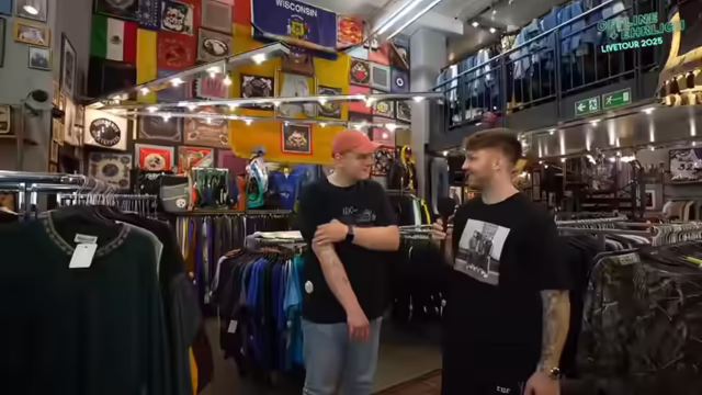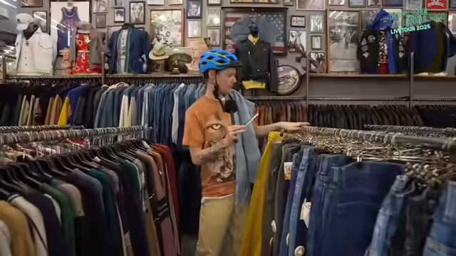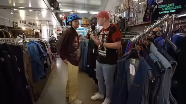 00:08:29Es wird entschieden, Second-Hand zu shoppen, was für einige eine Überraschung darstellt. Im Laden werden verschiedene Kleidungsstücke begutachtet, darunter Hemden, Jeanswesten und T-Shirts. Es werden ironische und unironisch geile Kleidungsstücke gefunden, wobei der Fokus auf außergewöhnlichen und einzigartigen Artikeln liegt. Die Möglichkeit, Tickets für die Tour zu gewinnen, wird erwähnt. Die Meinungen der Zuschauer zum Hoodie werden eingeholt, und es wird beschlossen, Outfits für beide Tourstopps (Zürich und München) auszuwählen. Die Herausforderung besteht darin, passende Hosen zu finden, wobei verschiedene Stile wie College-Jacken und Jeansjacken in Betracht gezogen werden.