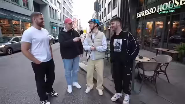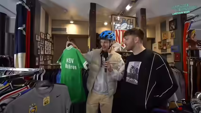 00:04:18Der Stream beginnt mit der Ankündigung eines Umstylings in Hamburg zur Vorbereitung auf die 'Offline & Ehrlich'-Tour, die in Zürich startet. Max und Chef Strobl sind anwesend. Es wird erwähnt, dass Max und ich uns die Frisur von Eminem, von Slim Shady, ganz kurz, ganz blond machen werden. Aufgrund eines Renos-Video-Drehs muss ich während der Tour einen Helm tragen, was die Outfitwahl zusätzlich beeinflusst. Trotzdem steht der Kauf von neuen Klamotten im Vordergrund, wobei ein Second-Hand-Laden besucht wird. Die Zuschauer können bei der Auswahl der Outfits mitwirken, obwohl ihre Meinungen nicht zwingend berücksichtigt werden. Ziel ist es, sowohl Bühnenoutfits für Zürich und München zu finden als auch den Zuschauern zu zeigen, dass ein Helm im Alltag cool ist und Sicherheit bietet.