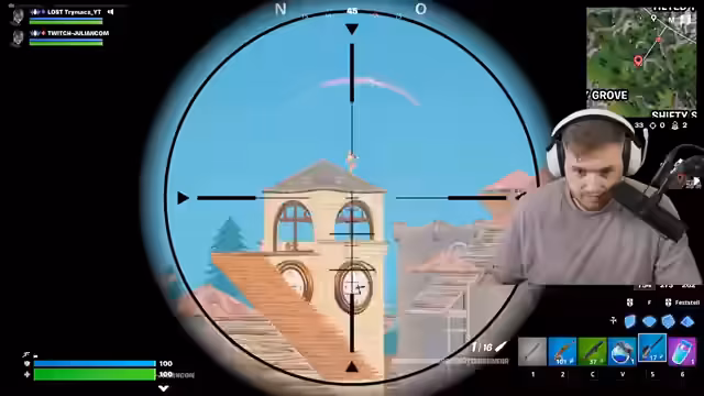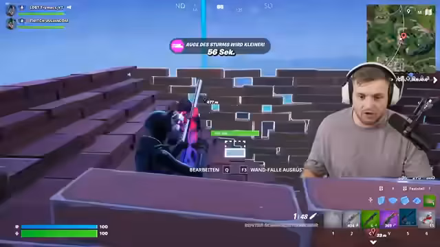 06:08:41Die Fortnite-Runde wird durch technische Unterbrechungen überschattet, da die Capture-Karte und die Kamera ausfallen. Nach einem Restart gewinnt der Streamer die Runde, wird jedoch anschließend Opfer eines Stream Snipers. Ein Gegner, der im Chat aktiv ist, findet den Streamer in seinem Versteck und eliminiert ihn, was zu einem frustrierten Kommentar führt. Der Streamer meldet den Vorfall in-game als unsportliches Verhalten.