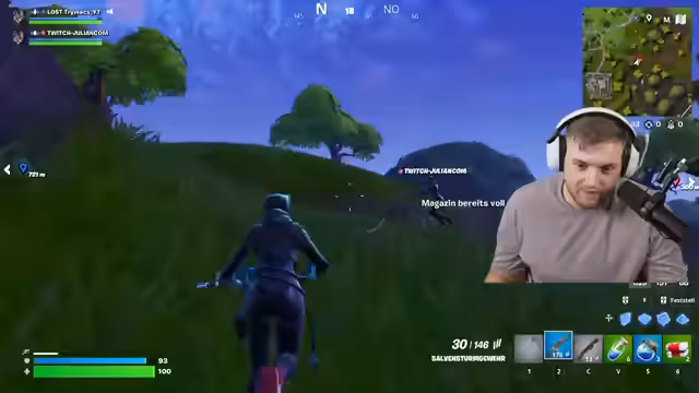 02:52:04Der Stream startet mit einem hektischen Start, bei dem der Streamer ums Überleben kämpft. Nachdem er einen Medi-Pack hat, entscheidet er sich, einen Slurp Juice aufzunehmen, was zu einem hektischen Rückzug in die Zone führt. Gemeinsam mit seinem Duo wird strategisches Loot diskutiert und es werden Gegnerpings im Gebiet von Tilted Towers gesichtet. Das Ziel ist, die Gegner eiskalt zu erwischen, wobei das Team über den Sniper-Druck diskutiert.
