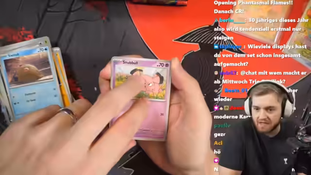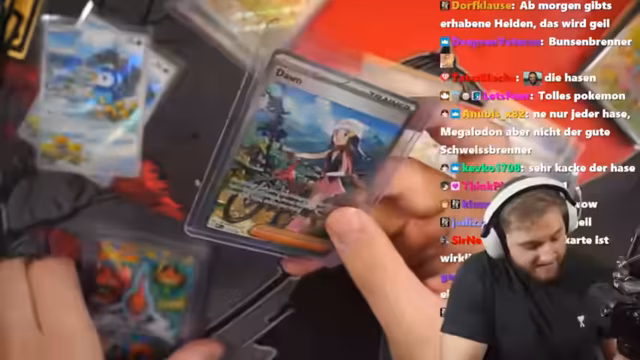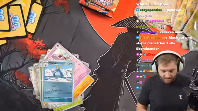 02:28:06Der Stream beginnt mit einem Pokémon Opening, bei dem der Streamer auf das seltene Glurak-Alt-Artwork abzielt. Er öffnet mehrere Displays und ein ganzes Case des neuen Sets, investiert dabei über 5000 Euro, zieht aber nur zwei Alt-Artworks, keine relevanten Karten und erst zum Schluss ein Rotom-Alt-Artwork als Trostpreis. Die Pull-Rate wird als extrem unglücklich und das Opening als eine der schlimmsten Erfahrungen bezeichnet. Um die vielen Bulk-Karten zu verwalten, werden Ideen wie Verbrennen oder Sprengen ins Spiel gebracht. Die Enttäuschung ist spürbar, da das Hauptziel nicht erreicht wurde.