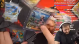 00:59:18Der Streamer hat beim Öffnen der Displays extremes Pech. Nach dem Öffnen von sechs Displays ist er enttäuscht, da er trotz der hohen Ausgaben von über 3600 Euro nur eine einzige Alt-Artwork zieht: den hasenhaften Schlappohr, den er hasst. Dieser soll nur 20 Euro wert sein, während das ersehnte Glurak-Alt-Artwork, das 3000 Euro wert ist, fehlt. Er zweifelt am Packungsinhalt und vermutet einen Fehler des Herstellers.