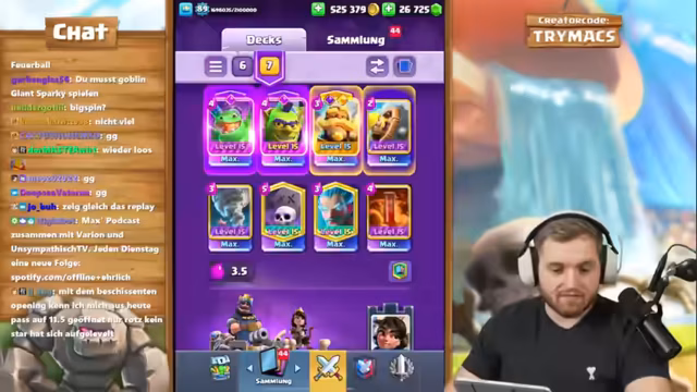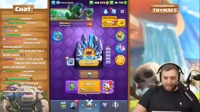 05:54:40Die Session beginnt mit intensiven Clash Royale-Duellen, bei denen der Fokus auf dem Erreichen von Ligastufe 6 und dem Erhalt des Titels 'Ultimate Champion' liegt. Es werden verschiedene Decks wie Poison, Ritter und Eismagier eingesetzt. Der Streamer analysiert das Matchmaking kritisch, betont aber die hohen Siege, die trotz anspruchsvoller Gegner erreicht wurden. Der Ton ist kompetitiv und strategisch, mit lauten Reaktionen auf Siege und verlorene Spiele, die den Druck und die Anspannung der Session widerspiegeln.
