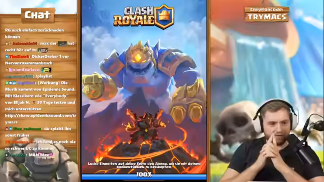 04:40:04Der Streamer spielt gegen ein unkonventionelles Royal Giant-Deck, das er als geisteskrank und extrem nervig bezeichnet. Das Matchup erfordert spezifische Strategien, wie den späten Einsatz von Cage zum Rückdrängen des Gegners. Zudem werden die Schwierigkeiten gegen Meta-Decks wie 3 Musketiere mit Pumpe angesprochen, die als sehr 'broken' (übermächtig) angesehen werden. Er analysiert, dass der Schlüssel zum Sieg darin liegt, keinen Schaden am Anfang zu kassieren und gute Value aus den eigenen Karten zu ziehen.
