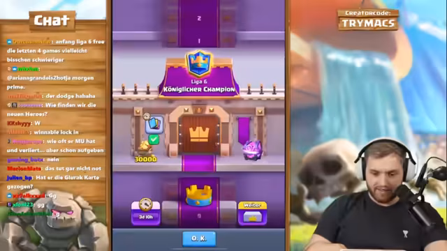 05:37:15Nach hartem Kampf wird das Ziel erreicht: Der Aufstieg in Liga 6 als Königlicher Champion. Dies gelingt mit einem festen Deck, nicht einem Mega-Draft, was als besonderer Erfolg gewertet wird. Die Stimmung ist euphorisch, da nun nur noch zehn Siege bis zum Ultimativen Champion fehlen, ein Rang, aus dem man nicht mehr absteigen kann. Der Streamer analysiert die Siegquote der Gegner und stellt fest, dass viele geisteskranke Coinflip-Decks spielen, was das Matchups unvorhersehbar und herausfordernd macht.
