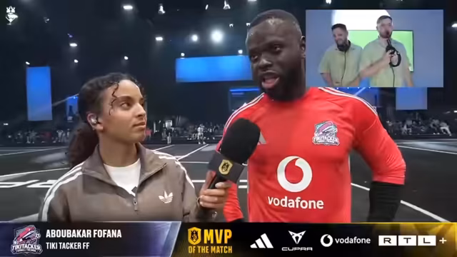 03:07:12In der Verlängerung erzielt Era Colonia durch einen genialen Chipball das entscheidende Golden Goal und gewinnt das Spiel mit 5-4. Die Spieler von Era Colonia feiern den Sieg über das bis dato ungeschlagene Team Tiki Taka emotional. Die Fanfreundschaft zwischen den Teams unterstreicht den sportlichen Charakter des Ereignisses. Es wird der große Vorteil des Sieges für die weitere Teilnahme an der Kings League betont.