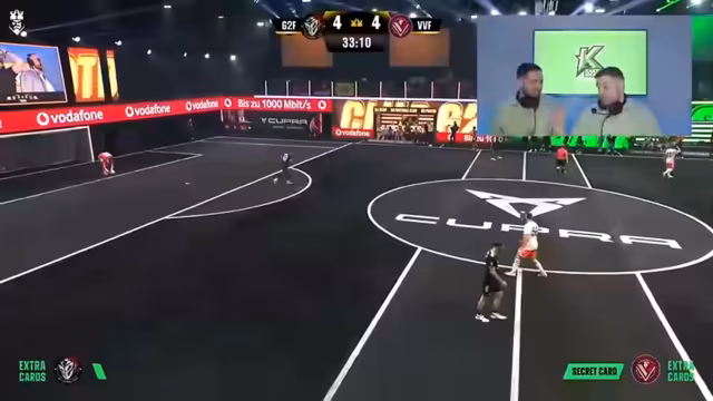 01:31:29In der zweiten Halbzeit werden die Secret Cards entscheidend. Footballistas aktiviert die Karte 'Doppelt Tore', beißt für vier Minuten jedes Tor doppelt zählt. Kurz darauf zieht No Rules die Karte 'Sperre', was den besten Spieler des Gegners vom Feld befreit. Die Dynamik des Spiels ändert sich radikal. No Rules kann dem Druck standhalten, das 2-3 durch ein Elfmeter von Kuba stabilisieren und einen Sieg einfahren.