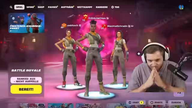 00:01:15Der Stream beginnt mit technischen Anpassungen und Umbenennungen. Trymacs plant, um 14 Uhr mit Schradin im Random Squads-Modus zu zocken, nachdem er zunächst alleine spielt. Er erwähnt, dass er viel Gameplay-Material aufnimmt und hochlädt, darunter beeindruckende Solo-Erfolge in der Fortnite Global Top 200. Trymacs äußert sich humorvoll über seine Zuschauer und deren Tagesabläufe, wobei er sich vor allem an die Mittagspause richtet.