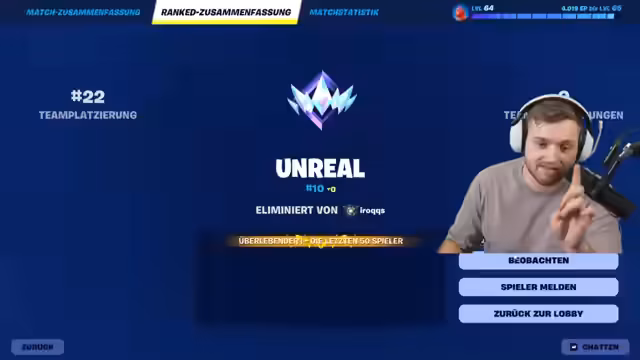 02:33:58Trymacs spricht über die Idee, mit einem Bronze-Account im Solo-Modus gegen Squads anzutreten und schlägt drakonische Strafen für den Fall vor, dass er ein Squad besiegt. Die Konsequenzen reichen von sofortiger Freundschaftslöschung bis hin zu lebenslangen Kontaktverboten und Auswanderung. Anschließend wird das Thema 'Road to Unreal' mit Reload und Somata angeschnitten, wobei die verbleibende Dauer der Unreal Season unklar ist. Er kommentiert, dass das Abbrechen von Matches gut funktioniert habe und sie nun ein anderes Spiel haben. Trymacs betont die Stärke der Pumpgun und den Bedarf an mehr Slots im Spiel. Er äußert seinen Unmut über einen Spieler ohne Emotes und weist seinem Teampartner den Dropspot zu.