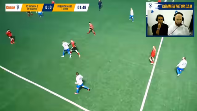 00:04:15Ein wichtiger Anlass für den Stream ist die Ankunft der neuen, dunkelblauen Trikots vom Sponsor Knabe Malz. Dies beendet das Problem, bei Auswärtsspielen mit Leibchen antreten zu müssen. Zusätzlich sicherte sich der Sponsor auch die Unterstützung für die nächste Saison. Ein weiteres Highlight ist der unerwartete Erfolg im Pokal, da das Team das Viertelfinale erreicht hat, entgegen aller Erwartungen und gegen stärkere Gegner aus höheren Ligen.