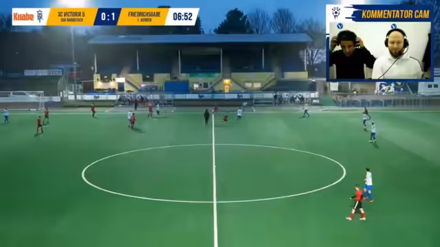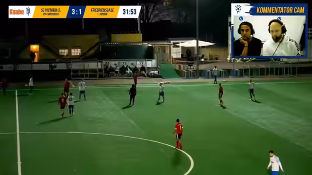 00:27:10Das Spiel beginnt mit einem frühen Schock für den SSV Harztag: In der vierten Minute kassiert das Team das 0:1 durch Friedrichsgabe. Der Treffer resultiert aus einer mangelhaften Verteidigung, bei der die Abwehrspieler nicht konsequent genug agieren und der Gegner den Ball einfach einschieben kann. Diese kalte Dusche wird auf eine fehlende Bewegung und möglicherweise auf ein unzureichendes Warm-up zurückgeführt, da das Team in dieser Saison oft früh in Rückstand gerät. Trotz des Rückstands zeigt der SSV Harztag eine schnelle Reaktion. Nur wenige Minuten später gelingt Mo der Ausgleich zum 1:1. Nach einem genialen Hackenpass von Hans, der die gegnerische Abwehr aushebelt, schließt Mo zunächst den Torwart ab, erzielt aber im Nachschuss den wichtigen Ausgleich. Die Räume auf dem linken Flügel sind riesig, und Mo nutzt dies effektiv aus. Der Spielstand ist wieder offen, und die Partie verspricht, spannend zu bleiben, auch wenn der Torwart des Gegners bei diesem Treffer unglücklich aussieht.