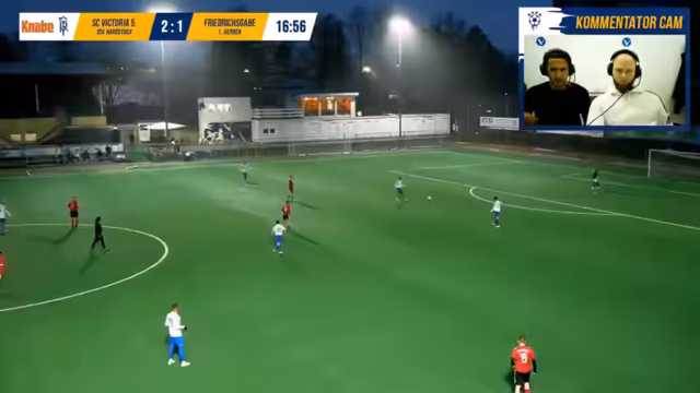 01:01:23Die Kommentatoren analysieren die Spielweise von Friedrichsgabe und die Rolle von Max im Spiel. Es wird festgestellt, dass Max oft Bälle auf der Zehn entgegennimmt, klatschen lässt und so Doppelpässe ermöglicht, was er vorne seltener tun kann. Seine Fähigkeit, Bälle zu verteilen und sich in der Offensive einzubringen, wird hervorgehoben. Es wird diskutiert, dass Max eine Art Sechserfunktion im Angriff übernimmt, indem er Bälle festmacht und nach außen verteilt. Trotz einiger guter Aktionen wird die Gesamtleistung als solide Mannschaftsleistung beschrieben, bei der alle Spieler ihren Job gut machen und Zweikämpfe gewinnen. Die Ausgeglichenheit der Mannschaft wird positiv bewertet, obwohl Max als potenzieller 'Man of the Match' ins Gespräch gebracht wird, was jedoch von den Kommentatoren noch nicht vollständig unterstützt wird.
