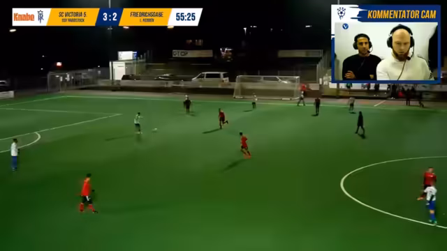 00:55:59Nach dem 3:1 Führung nimmt die SSV Harztag das Spiel komplett unter Kontrolle. Der Spielstil ist geprägt von viel Ballbesitz, einer ruhigen und souveränen Spielweise ohne Hektik. Die Mannschaft lässt dem Gegner den Ball, verteidigt aber konsequent und nutzt jede Gelegenheit zu Kontern. Kommentatoren und Team sind sich einig, dass ein weiteres Gegentor nicht mehr zu erwarten ist.