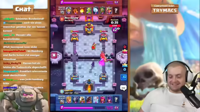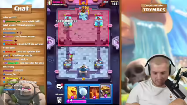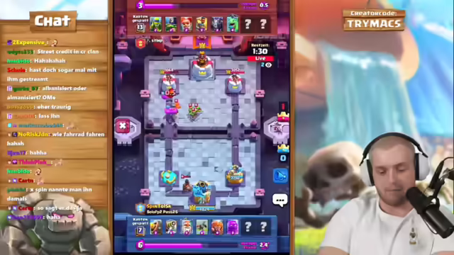 04:01:50Der Streamer scherzt darüber, vor Max' Bett zu stehen und die PQ-Formel abzufragen. Es wird eine Anekdote über Bixfin erzählt, der ein duales Studium abgeschlossen hat und mit 15 Jahren Abitur gemacht hat. Der Streamer hat keine Ahnung von der PQ-Formel. Es wird über Top 3 Logs gesprochen und der Streamer kommentiert, dass das Spiel vorbei ist. Er kritisiert das Matchmaking und die Spielweise seiner Gegner. Es wird über das Bigspin-Würz-Meme gesprochen und wie es entstanden ist. Der Streamer erklärt, dass Chef Strobel das Meme übernommen hat und sein Bruder ihn gefragt hat, ob er Würzspin ist. Es wird überlegt, wie man gegen bestimmte Kartenkombinationen vorgehen soll. Der Streamer kommentiert einen Push des Gegners und analysiert die Situation. Er lobt den Inferno Dragon des Tages und kommentiert, dass es knapp war. Es wird überlegt, wie lange der Streamer noch durchhalten kann und wie der letzte Push aussehen wird. Der Streamer gewinnt das Spiel und wird von Zuschauern geflamed. Er lädt Bigspin ein und es wird über die Länge der Aufnahme gesprochen. Der Streamer schießt gegen Mixpin und fordert eine Coca-Cola. Er kommentiert, dass seine Kartenwahl nicht so schlecht ist, aber er langsam nicht mehr checkt, was er braucht. Es wird über Doppel Luft und Lightning gesprochen. Der Streamer hat Hunger und überlegt, ob er ein Gebäude mitnehmen soll. Er entscheidet sich für einen Drill und war kurz weg, um etwas zu trinken und zu essen zu holen. Der Streamer hat sich verklickt und denkt, dass sein Gegner ihn jetzt für schlecht hält.