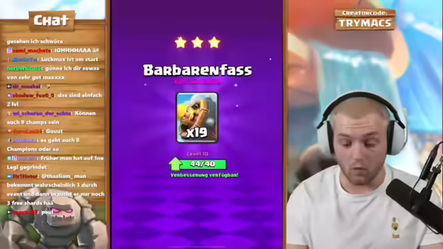 01:54:38Es werden weiterhin Kisten geöffnet, wobei der Fokus auf dem Erhalt von Karten für Verbesserungen liegt. Ein Kampfbanner wird gezogen, aber als uninteressant abgetan. Franco wird aus einer Zweier-Kiste gezogen und ins Friedhof-Deck integriert. Es werden seltene Joker und Kobold-Töte gefunden, die Elite-Joker bringen. Die Barbarenhütte, als am wenigsten gespielte Karte, wird erwähnt. Es wird nach einem Vierer gesucht, aber bisher keiner gefunden. Ein Tool zum schnelleren Öffnen der Kisten wird verwendet. Trotz vieler Öffnungen bleibt der Vierer aus, was für Frustration sorgt. Anschließend werden Gold-Chests geöffnet, aber die Ergebnisse sind enttäuschend. Die Hoffnung ruht auf garantierten Two- und Three-Star-Kisten. Valkyre wird mehrfach gezogen, was den Streamer freut, da er diese im Clan anfordert. Eine Legendary, Royal Ghost, wird gezogen, in der Hoffnung, dass diese in der Evo-Version stark sein wird. Fünfer Baby Dragon wird als positiv bewertet. Bisher wurde noch kein Vier-Sterne gezogen. Die garantierten 2- und 3-Sterne werden geöffnet und endlich wird ein Vier-Sterne gezogen, der 180 seltene Joker bringt. Gold wird als Belohnung als negativ bewertet. Es wird überlegt, die Valkyre als Evo zu spielen und Joker-Fragmente werden als positiv bewertet.