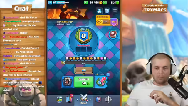 00:03:47Nach dem Start des Streams widmet sich der Streamer dem Spiel Clash of Clans. Er berichtet stolz von seinen herausragenden Leistungen in der aktuellen Liga: Er hat alle Angriffe zu 100% absolviert und die beste Verteidigung der Liga. Durch diesen dominanten Auftritt steigt er direkt in die nächste Liga auf und unterstreicht seine beeindruckende Performance mit dem Free-to-Play Pass.