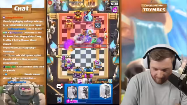00:36:30Nach ausführlicher Beschäftigung mit dem Luftballon-Fetisch wechselt der Streamer zum eigentlichen Hauptinhalt des Abends: Clash Royale. Er plant, gemeinsam mit Bigspin zu spielen, um in die Top 2000 der globalen Rangliste aufzusteigen. Dabei analysiert er verschiedene Decks, die gegen aktuelle Meta-Decks wie Inferno-Drager eingesetzt werden können. Der Streamer betont die Wichtigkeit der Zusammenarbeit und strategischen Entscheidungen während der Spiele, während er auf die bevorstehende Ende der Saison hinweist.