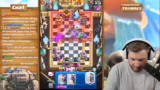 01:48:10Der Streamer steht vor mehreren herausfordernden Matchups, insbesondere gegen ein als sehr schwierig eingestuftes Curse-Deck. Es kommt zu koordinierten Zügen wie dem Einsatz von Sepp und Goblin Giant, wobei die Gegner schnellere Zyklen haben. Trotz aggressiver Strategien mit Pfeilen und Prinz-Brücken-pushes wird das Matchup als chancenlos eingestuft, was zu einer Early-Surrender-Diskussion führt. Der Streamer analysiert Fehler und betont die Notwendigkeit schnellerer Entscheidungen bei scheinbar aussichtslosen Spielen.