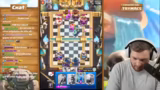 00:53:10Der Streamer beginnt mit den Clash Royale-Spielen, wobei er und sein Partner Bigspin verschiedene Decks und Strategien testen. Sie konzentrieren sich auf den Kampf gegen Inferno-Drager und andere Meta-Decks, wobei sie spezielle Kombinationen wie Curse und Evo Zapp einsetzen. Der Streamer analysiert die Spielsituationen in Echtzeit und gibt Einblicke in taktische Entscheidungen. Dabei geht es um das Erreichen von Platzierungen in der globalen Rangliste und die Vorbereitung auf die anstehende Saison.