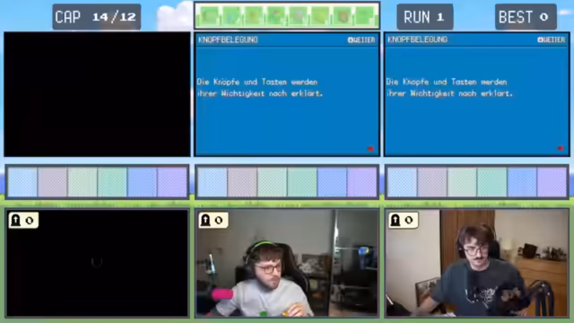 04:22:54Die Gruppe erreicht die erste Arena, muss jedoch feststellen, dass viele Codes und Cheats aufgrund der deutschen Version nicht funktionieren, was das Item-Management erschwert. Trainerkämpfe müssen absolviert werden, um genug Erfahrungspunkte für das kommende Gym zu sammeln. Mit nur zwei brauchbaren Pokémon und begrenzten Ressourcen stehen die Chancen gegen den Arenaleiter schlecht, was zu Diskussionen über Strategien und das Niveau-Handling führt. Items wie Sonderbonbons werden erwähnt, können jedoch aufgrund technischer Beschränkungen nicht genutzt werden.