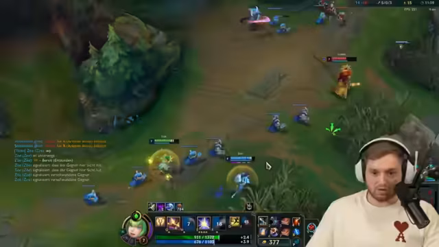 05:44:58Streamer diskutiert ausführlich das League-of-Legends-Matchmaking-System und ist frustriert über das Verlustsystem auf neuen Accounts, bei dem man trotz Siegen nicht aufsteigt. Später kehrt die Stimmung ins Positive zurück, als das Team durch perfekte Platzierung und Damage-Output einen Teamfight gewinnt und aufzieht, was als geiles Spiel beschrieben wird. Streamer fühlt sich jedoch insgesamt unwohl über seine Performance.